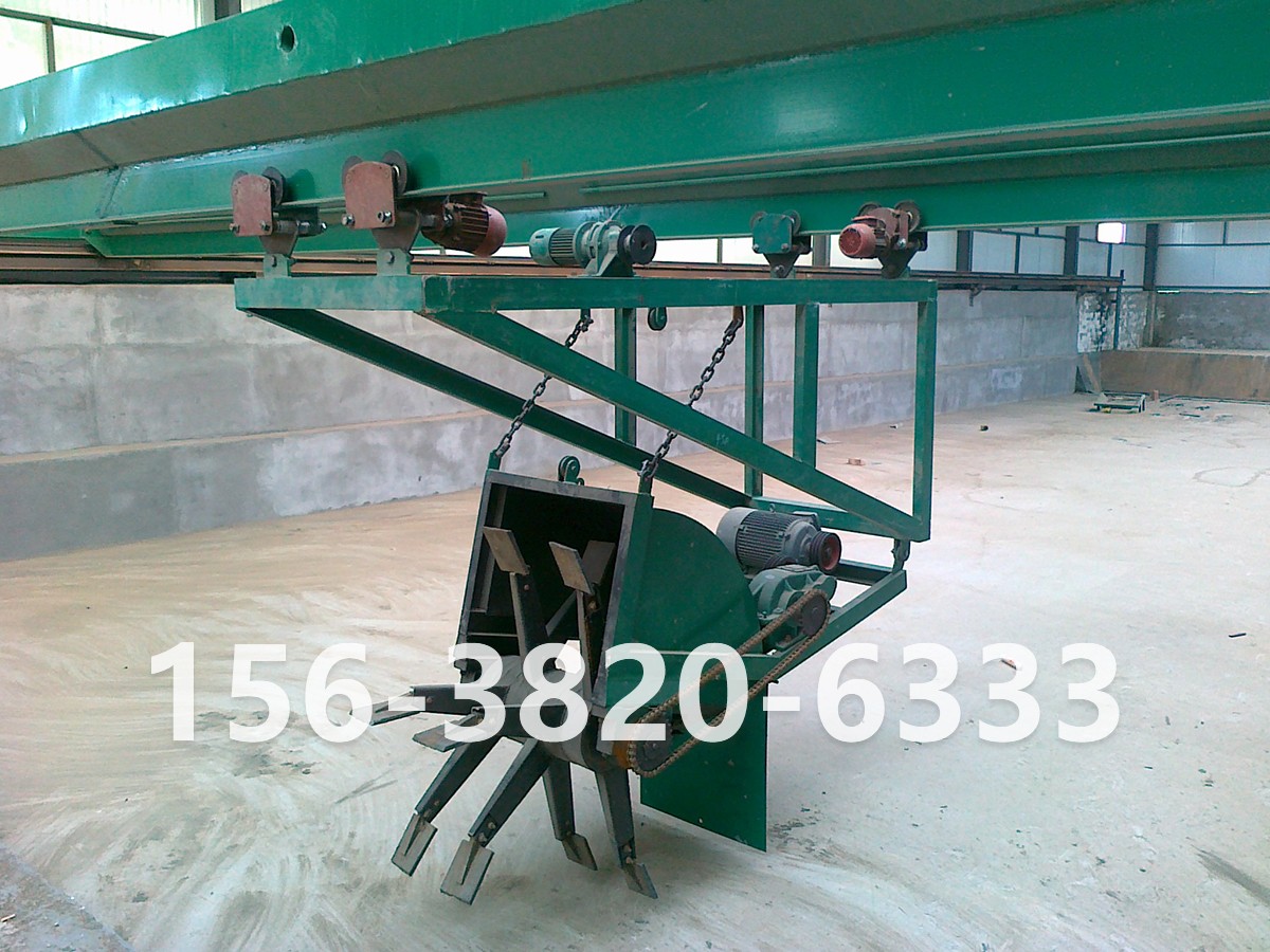 (翻料機由帶有翻鏟的旋轉滾筒、行走裝置和提升裝置等組成,旋轉滾筒由液壓馬達帶動,翻動發酵物料,在向后拋撒發酵物料過程中,起到疏松通氣、散發水氣、粉碎、攪拌等作用,使物料發酵腐熟、干燥。一般翻料機需用80~100 m長,7-8米寬的發酵槽,走完發酵槽需要30分鐘時間。)